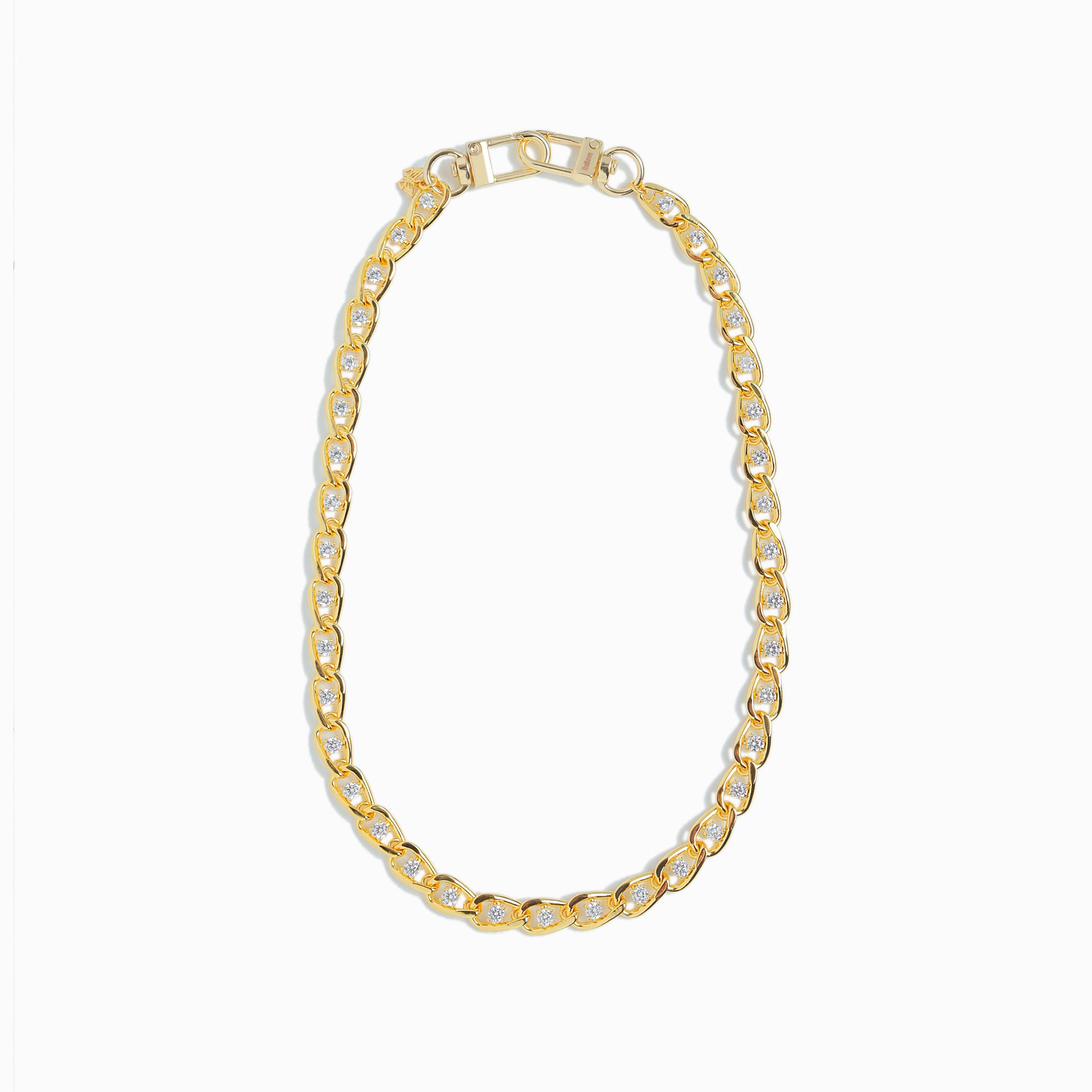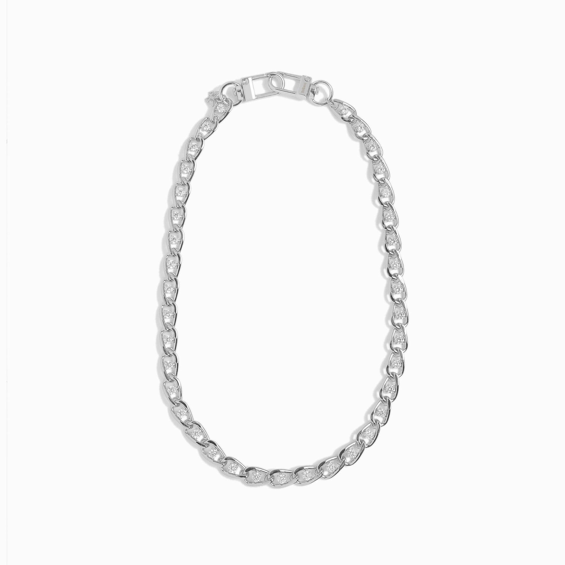 捻じりを効かせたチェーンの中央にキュービックジルコニアをセッティングしたマルチチェーン。